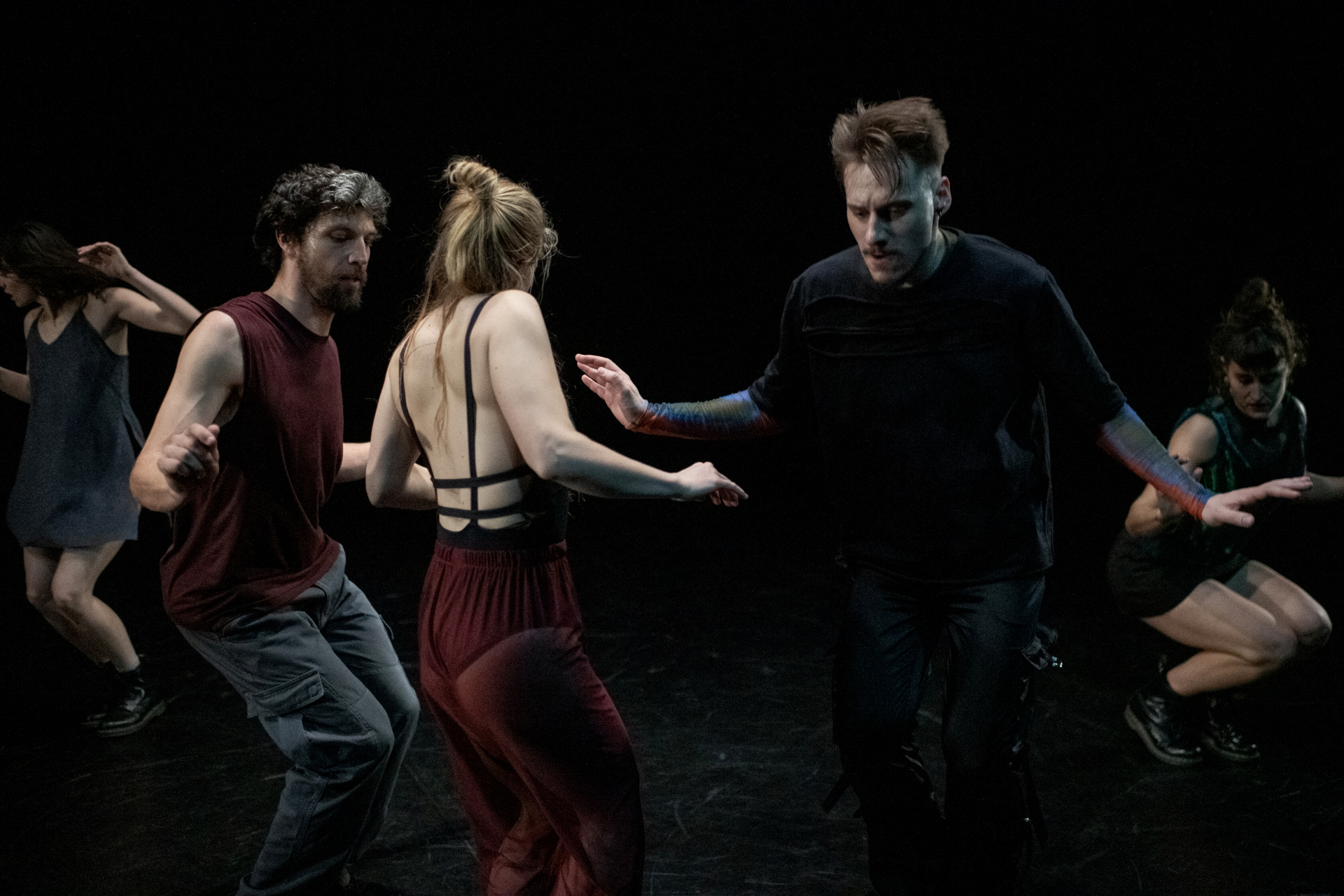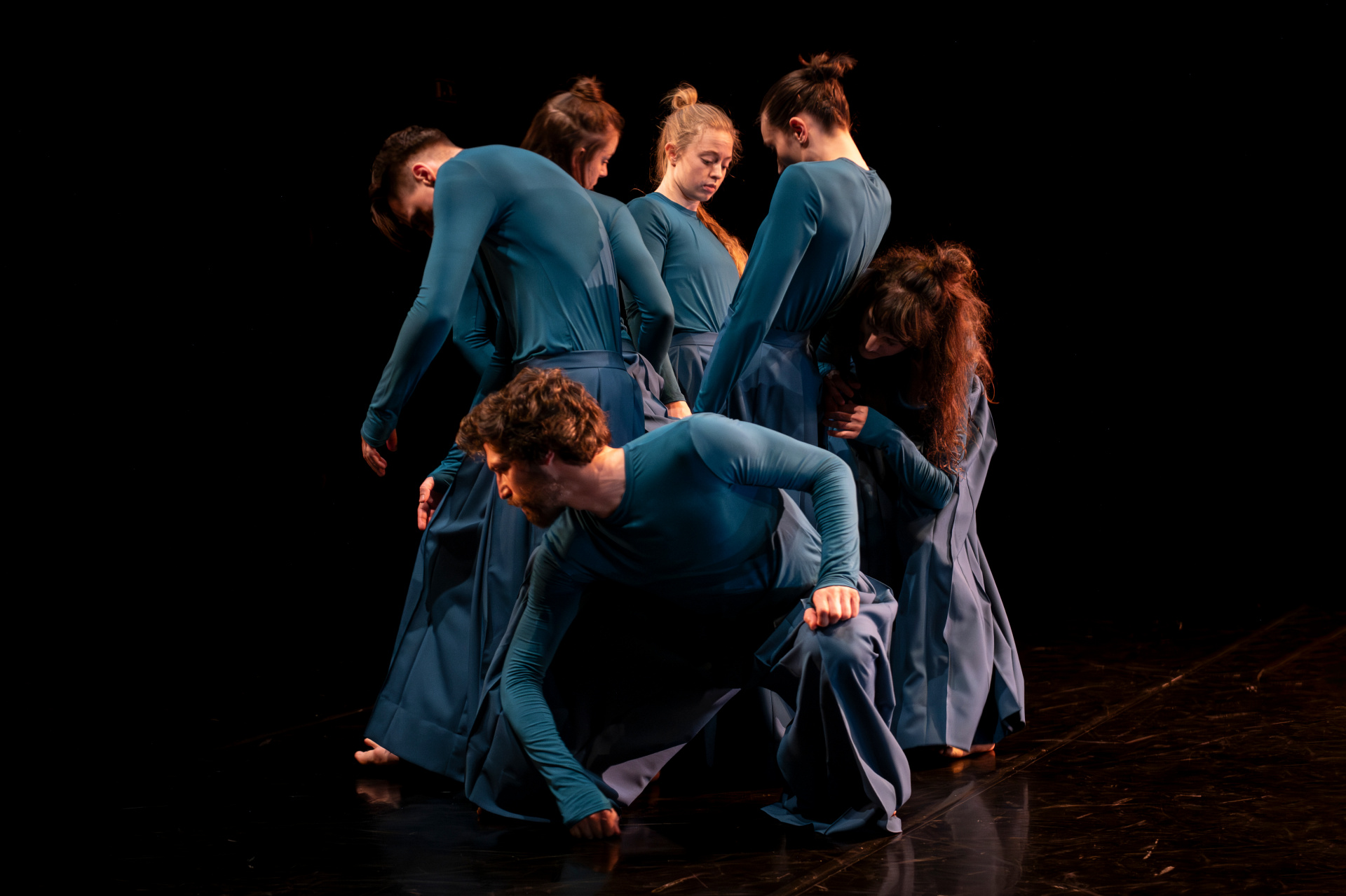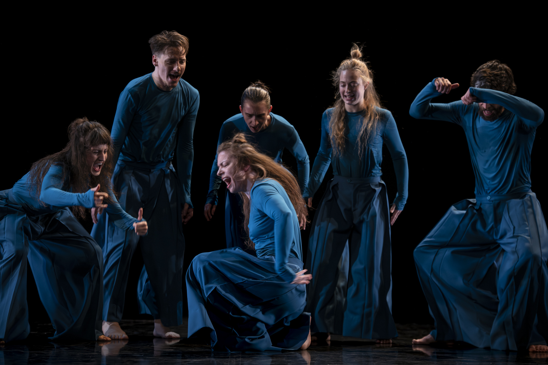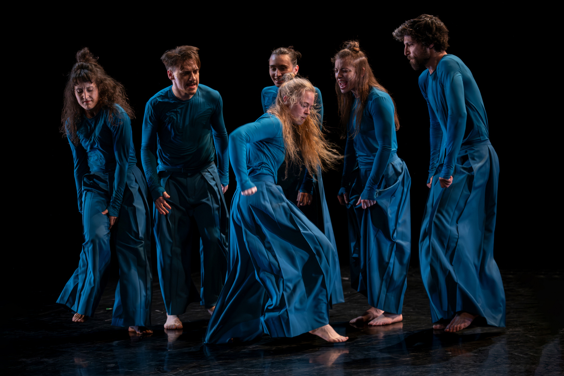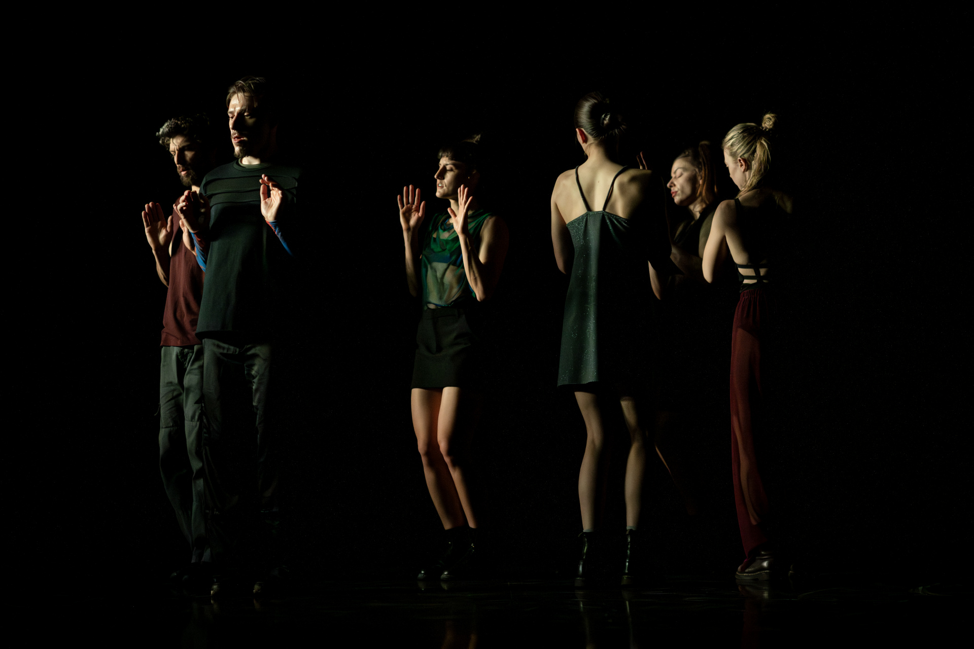 Telo je mesto zapisa – oblikovano z dediščino in spominom, prežeto z željo, prežarjeno s kolektivno energijo, a nikoli povsem zamejeno z njihovimi okviri. Identiteto hkrati označuje in presega, jo vzpostavlja, a se ji obenem izmika. V tej napetosti gib postane prostor artikulacije tega, kdo smo, kdo lahko postanemo in kako sobivamo – vprašanja, ki se ne odpirajo zgolj na družbeni ravni, temveč tudi znotraj skupine šestih plesalcev, kolektiva na meji med že oblikovanim in še neizrečenim: plesni diptih je namreč prvi projekt Mattie Casona v vlogi novega umetniškega vodje ansambla.